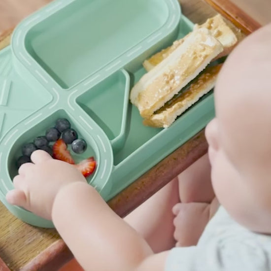 The anti-slip placemat ensures stability, helping to reduce mess and keep meals in place. Cutlery parking spots motivate children to set their utensils down neatly, keeping surfaces clean and making dining out more hygienic.
